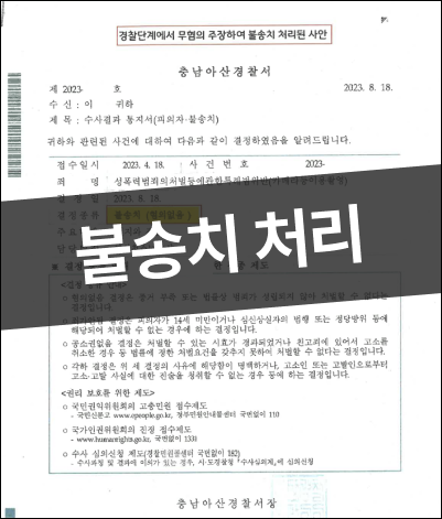 덕분에 법무법인 이든을 통해 증거가 불충분함을 충분히 피력하여 결과는 불송치로 정해졌습니다.