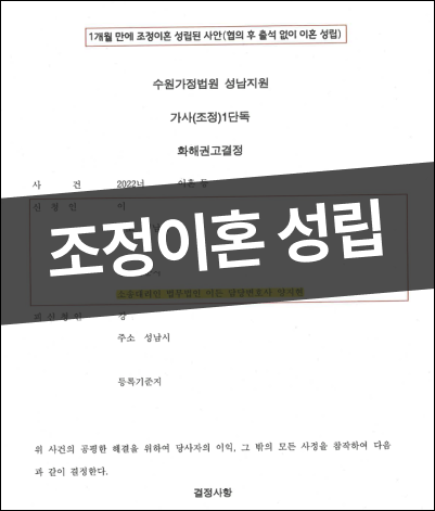 단 1개월 만에 조정이혼 성립이라는 결론을 받았습니다.