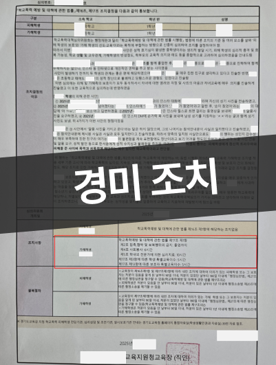 그 결과, 학교폭력예방법상 해당성은 인정되었으나, 출석정지·사회봉사·특별교육 이수 등 교육적 조치 중심으로 정리되었고, 보다 중한 조치로의 확대 없이 절차가 마무리되었습니다.