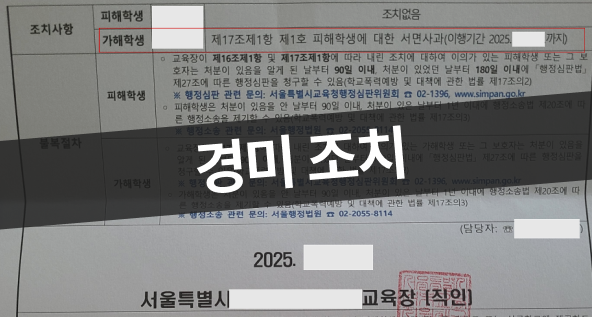그 결과, 일부 행위에 대해서는 학교폭력으로 판단되었으나 반복성이나 고의성이 높지 않고, 사안의 중대성이 크지 않다는 점이 종합적으로 고려되어 전학이나 학급교체 등 중대한 조치로 확대되지는 않았습니다.