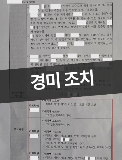 그 결과 일부 행위에 대해서는 학교폭력으로 판단되어 가해학생 조치가 결정되는 방향으로 정리되었지만, 중대성이 크게 인정되는 사안으로까지 확대되지는 않아 중대한 조치로 이어지지 않도록 사건의 틀이 정리된 사례로 볼 수 있습니다.